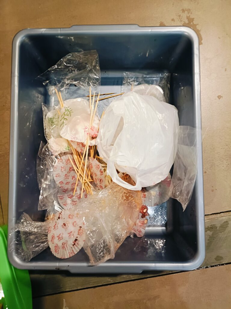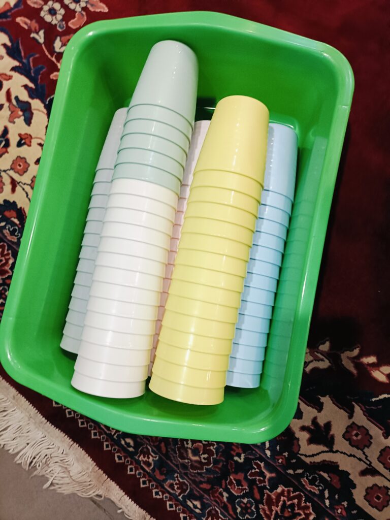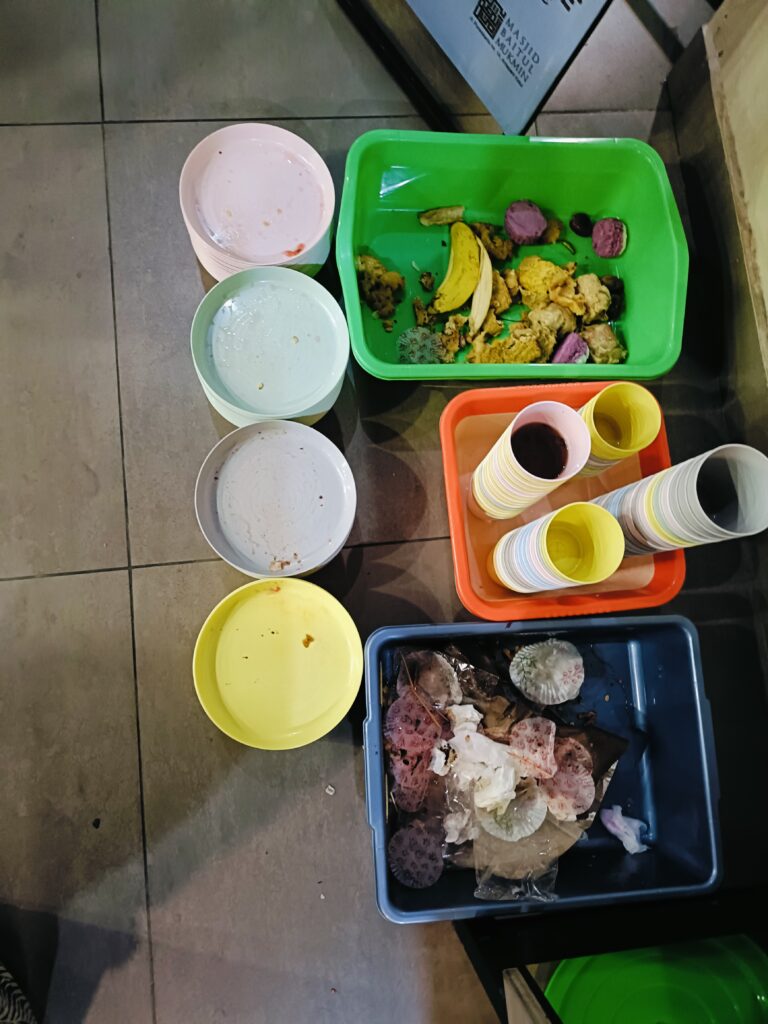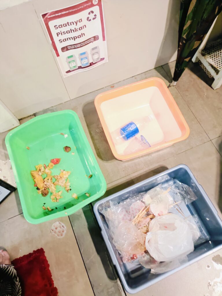 Gelas dan piring kecil, guna ulang yang terpakai pun berimbas berkurang, karena jamaah yang hadir tidak sepenuh biasanya, sekitar 70 piring kecil dan 71 gelas yang terpakai jamaah yang hadir buka bersama.