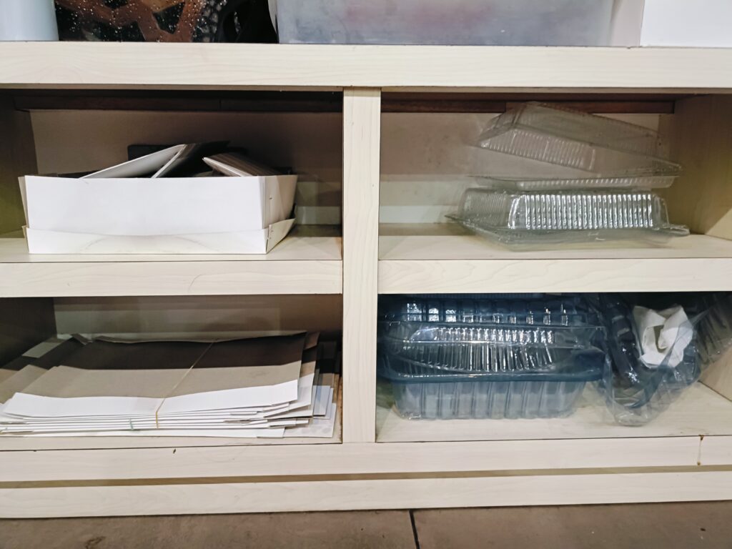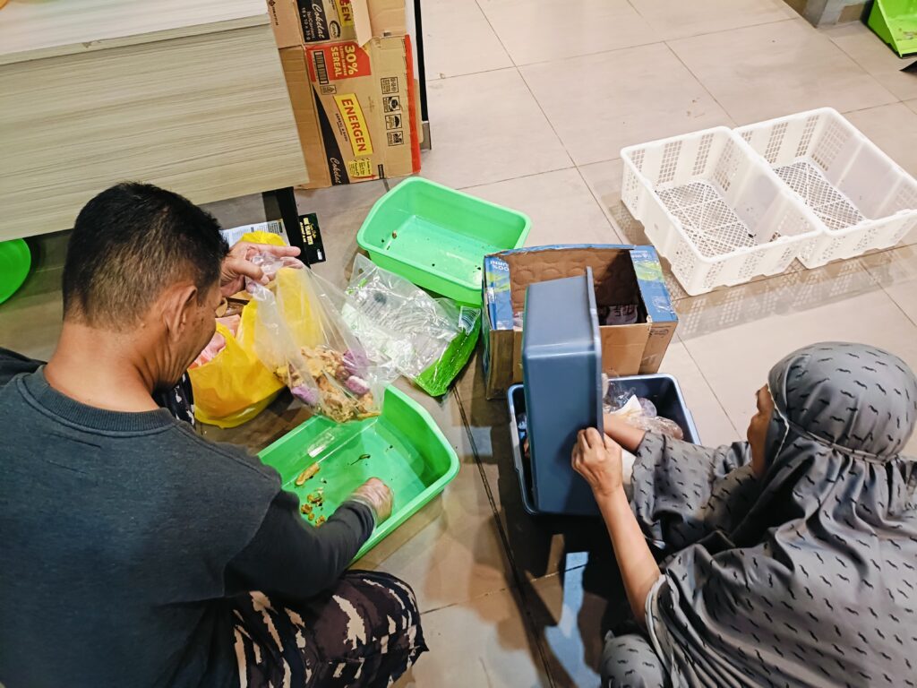 Dus kue atau plastik mika dilipat kembali, dan menjadi aset untuk guna pakai dalam mengemas makanan kembali.