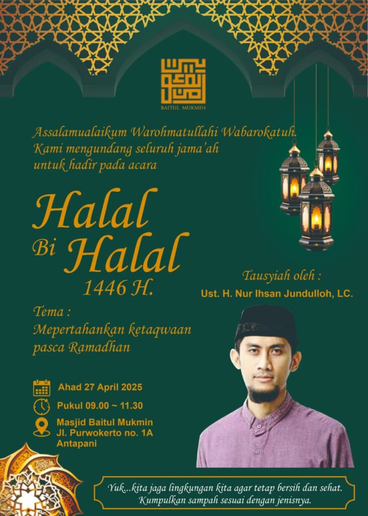 Keluarga besar Masjid Baitul Mukmin mengucapkan Selamat Iedul Fitri 1446 H, Mohon maaf lahir dan batin.