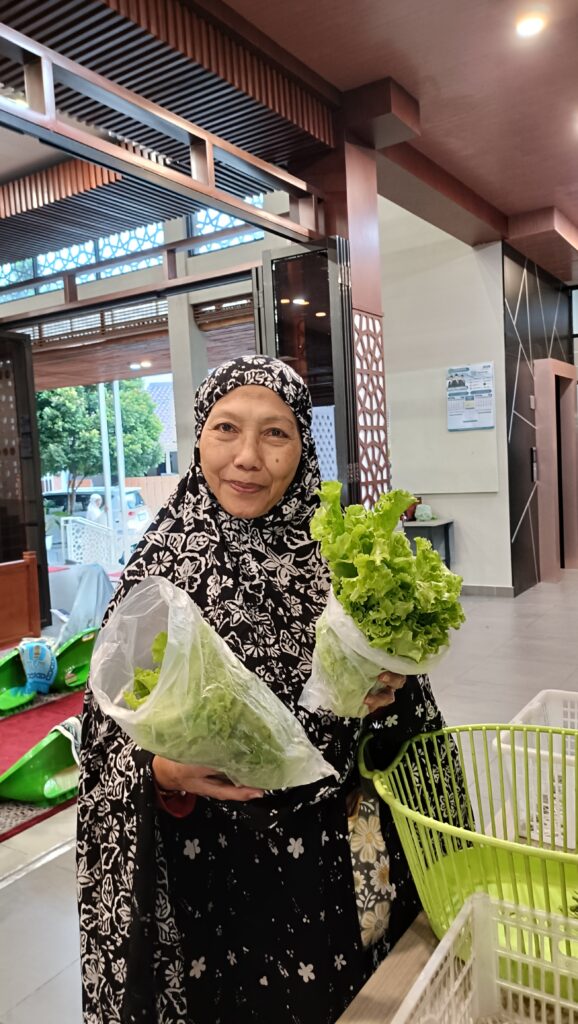 Senyum jamaah saat mendapatkan sayuran segar, menjadi ladang pahala bagi Tim Buruan SAE Geulis, yang senantiasa merawat buruan SAE dengan penuh cinta, menghasilkan hasil panen sayuran segar dan menyehatkan.