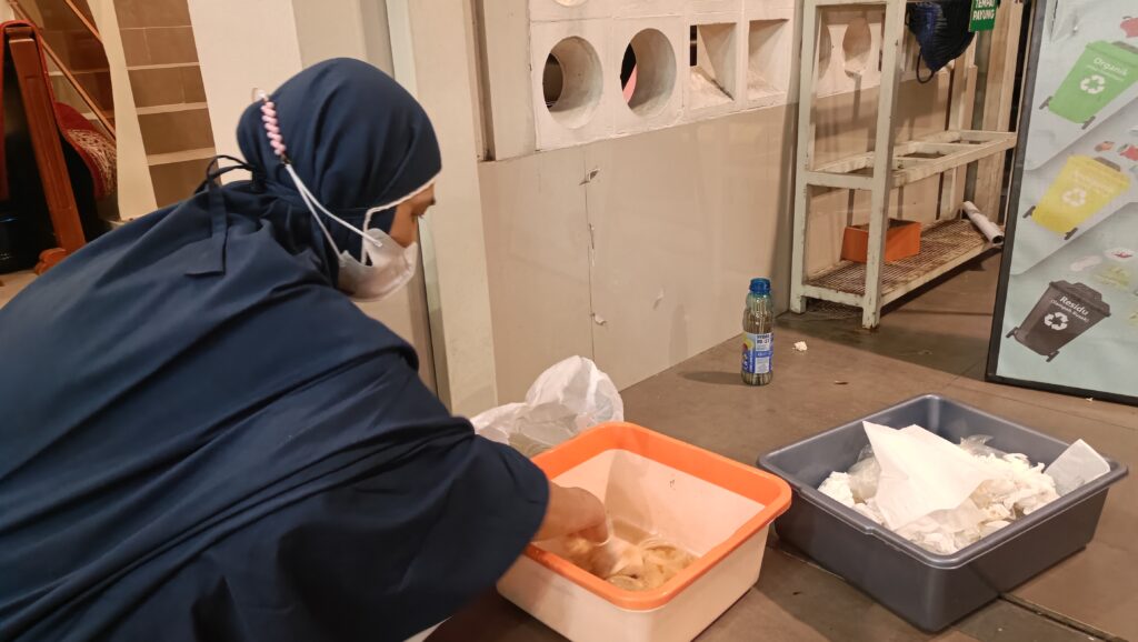 Tetap jaga bersih sehat di lingkungan masjid pasca berbuka shaum bersama, dengan memilah sampah sesuai jenisnya, dan dilakukan penimbangan timbulan sampah oleh Tim Kerja Berseka.