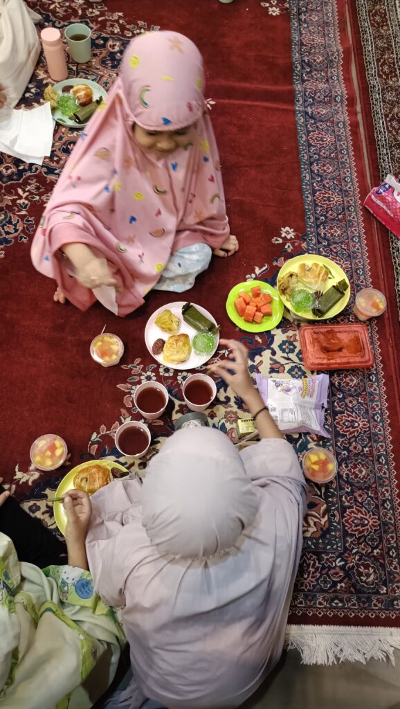 Jama’ah yang berbuka di masjid tidak seperti biasanya, membludak dari semua usia; anak-anak, remaja, dewasa dan lansia.