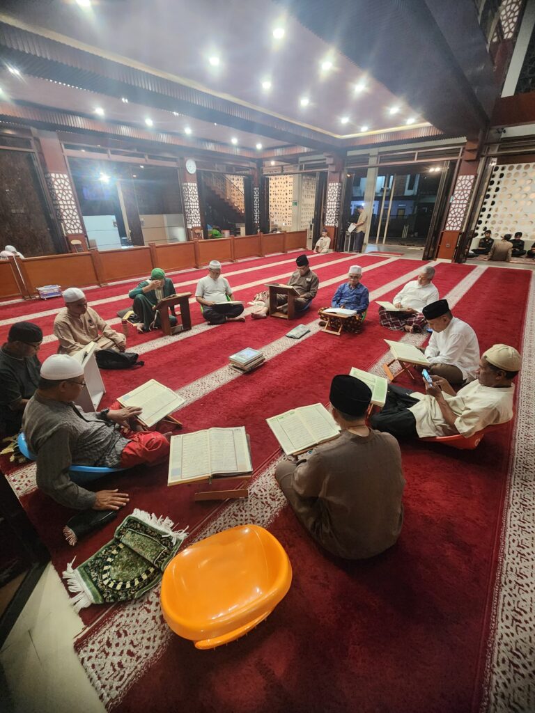 Membaca Alquran bapak-bapak setelah dilaksanakan tarawih.